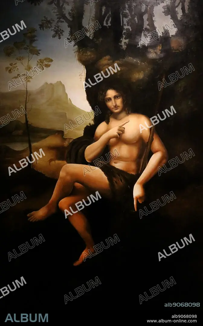Caption: Bacchus, formerly Saint John the Baptist, 1515; oil on wood, painting by the Italian Renaissance artist Leonardo da Vinci (1452-1519), Italian artist and polymath.