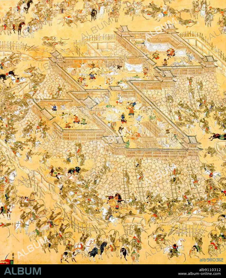 Title: First Siege of Ulsan : Korean and Chinese soldiers assault the Japanese-built fortress at Ulsan, Korea