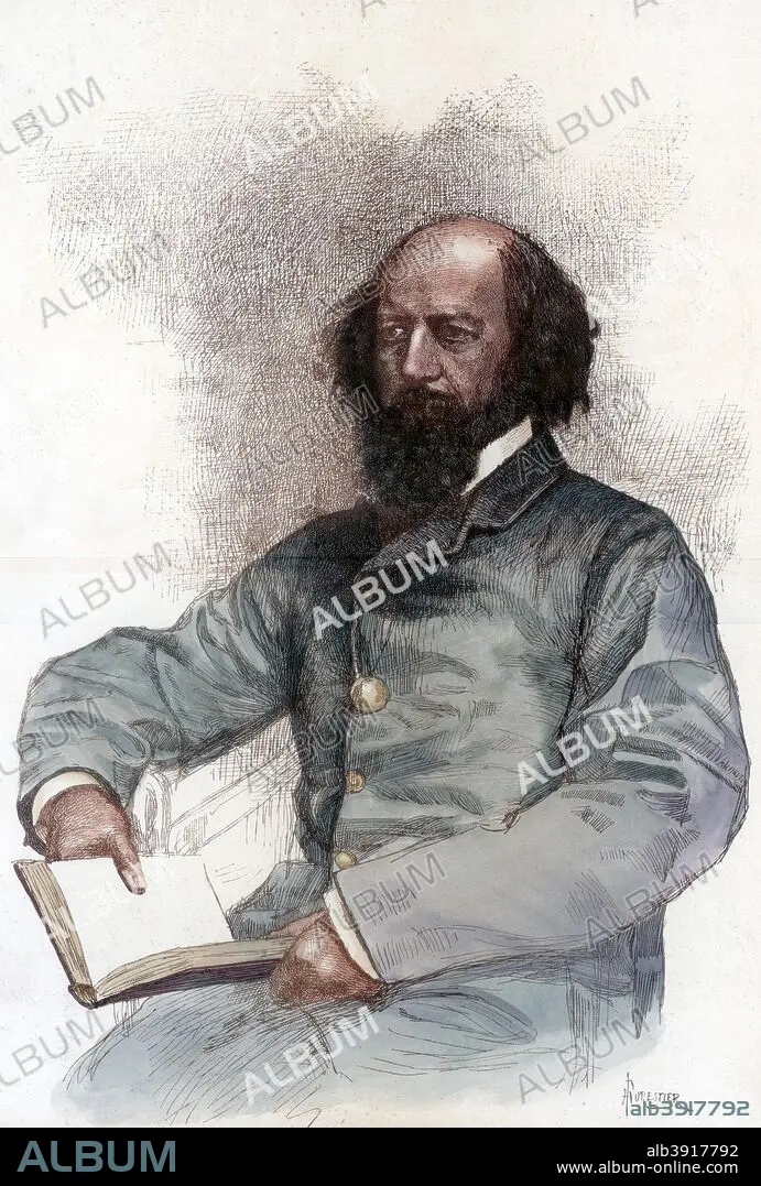 Caption: Alfred Lord Tennyson (1809-1892), English poet, 1884. Tennyson was one of England's most popular poets and its Poet Laureate from 1850 until his death. From a supplement to The Illustrated London News, 19 January 1884 (hand coloured later).