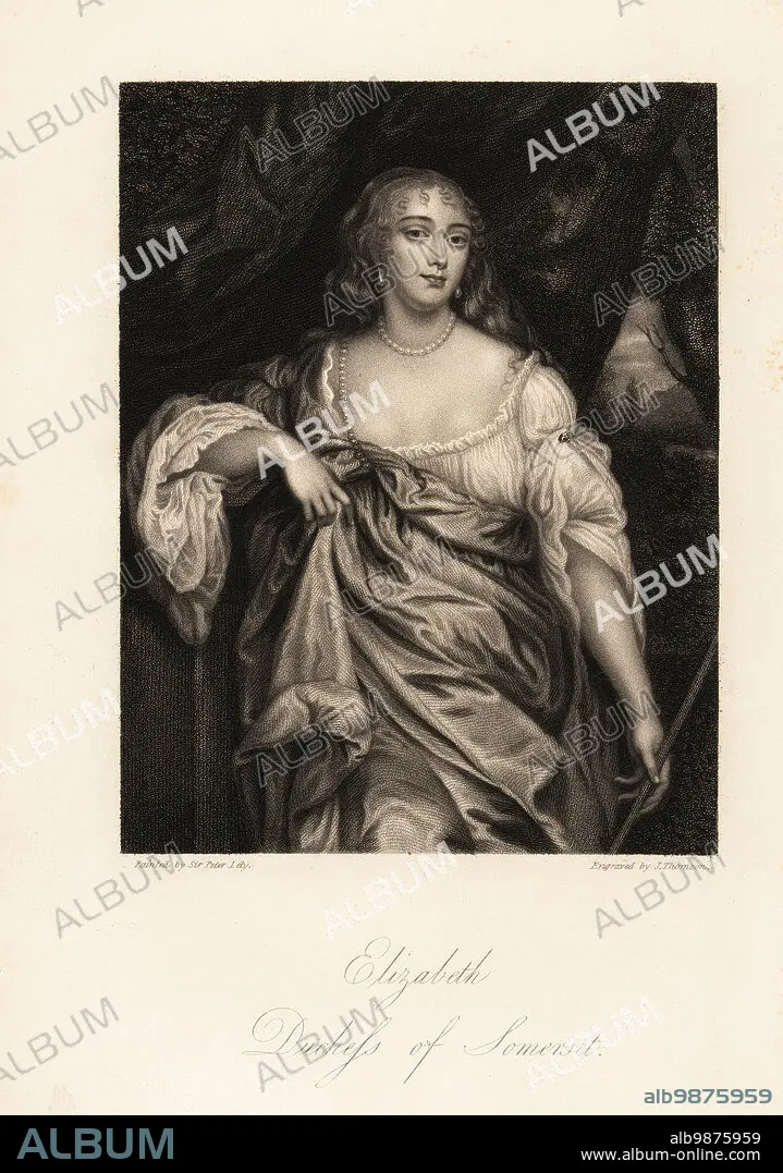 Caption: Portrait of Lady Elizabeth Seymour, Duchess of Somerset, formerly Elizabeth Percy, heiress and friend to Queen Anne, 1667-1722. Steel engraving by J. Thomson after a portrait by Sir Peter Lely from Mrs Anna Jamesons Memoirs of the Beauties of the Court of King Charles the Second, Henry Coburn, London, 1838