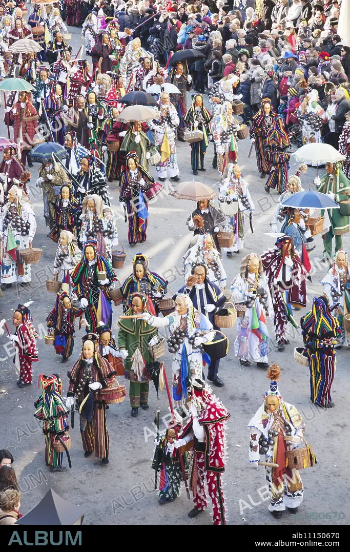 Caption: Narrensprung, traditional carnival, Rottweiler Fasnet, Rottweil, Black Forest, Baden Wurttemberg, Germany, Europe