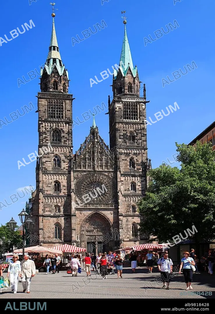 4 PEOPLE; ARCHITECTURAL STYLES; ARCHITECTURAL STYLE; ARCHITECTURE; ATTRACTIONS; ATTRACTION; BAVARIA; BAYERN; BELFRY; BELL-TOWER; BELL TOWERS; BELL TOWER; BUILDING FACADE; BUILDINGS; BUILDING; CENTRAL EUROPE; CHRISTIANITY; CHRISTIAN; CHURCH BUILDING; CHURCHES; CHURCH TOWERS; CHURCH TOWER; CHURCH; CLERICAL; CLOCK TOWER; CONSTRUCTION; CULTURAL MONUMENTS; CULTURAL MONUMENT; ECCLESIAL; ECCLESIASTICAL; EUROPE'S; EUROPE; EXTERIOR PHOTOGRAPH; EXTERIOR VIEWS; EXTERIOR VIEW; EXTERIOR; FACADES; FACADE; FAMOUS PLACE; FAÇADE; FOUR PEOPLE; FRANCONIA; FRG; FRONTAGE; FRONT; GERMAN FEDERAL REPUBLIC; GERMANY; GERMAN; GOD'S HOUSE; GOTHIC STYLE; GOTHIC; HISTORY OF ART; HOUSE OF WORSHIP; LANDMARK; LORENZKIRCHE; MIDDLE EUROPE; MIDDLE FRANCONIAN; MIDDLE FRANCONIA; MITTELFRANKEN; NUREMBERG; OUTDOOR PHOTO; OUTDOOR SHOTS; OUTDOOR SHOT; PARISH CHURCHES; PARISH CHURCH; PLACE OF INTEREST; PROTESTANT; RELIGIONS; RELIGION; RELIGIOUS BUILDING; REPUBLIC OF GERMANY; SACRAL BUILDING; SACRAL BUILDING; SACRED BUILDING; SIGHT; SOUTHERN GERMANY; SOUTH GERMANY; ST. LAWRENCE; ST. LORENZ; STEEPLE; STRUCTURE; TOURIST ATTRACTIONS; TOURIST ATTRACTION; TOURIST LANDMARK; TOWERS; TOWER; TRAVEL PHOTOGRAPHY; WEST FACADE; WEST FAÇADE; WEST FRONTS; WEST FRONT