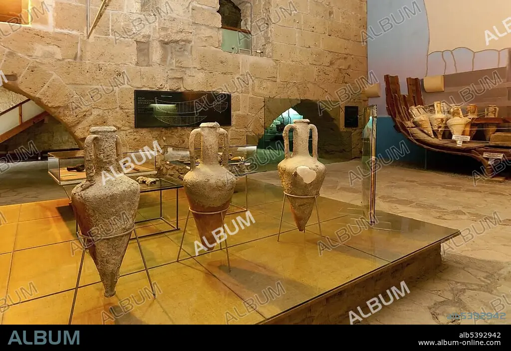 Shipwreck museum, Iron Age shipwreck, the Kyrenia Ship, dated 300 BC, interior view of Kyrenia Castle, Girne, northern Cyprus, Cyprus, Europe