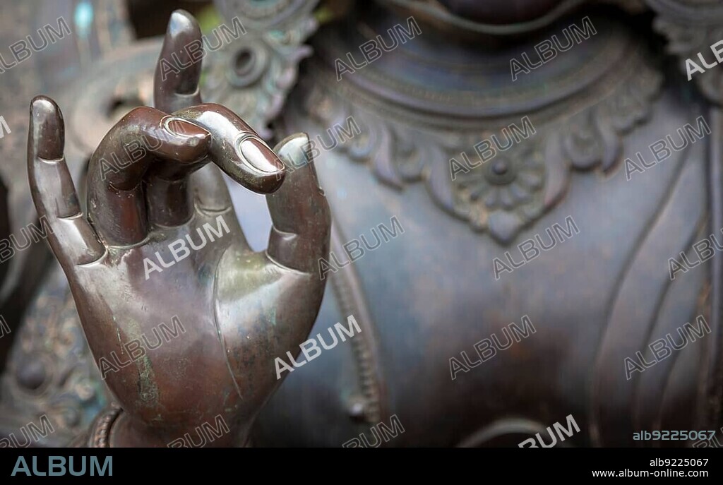Caption: Karana mudra hand position expresses a very powerful energy with which negative energy is expelled. This hand gesture is also called warding off the evil. You can sense a very determined, focused energy just by looking at this hand gesture
