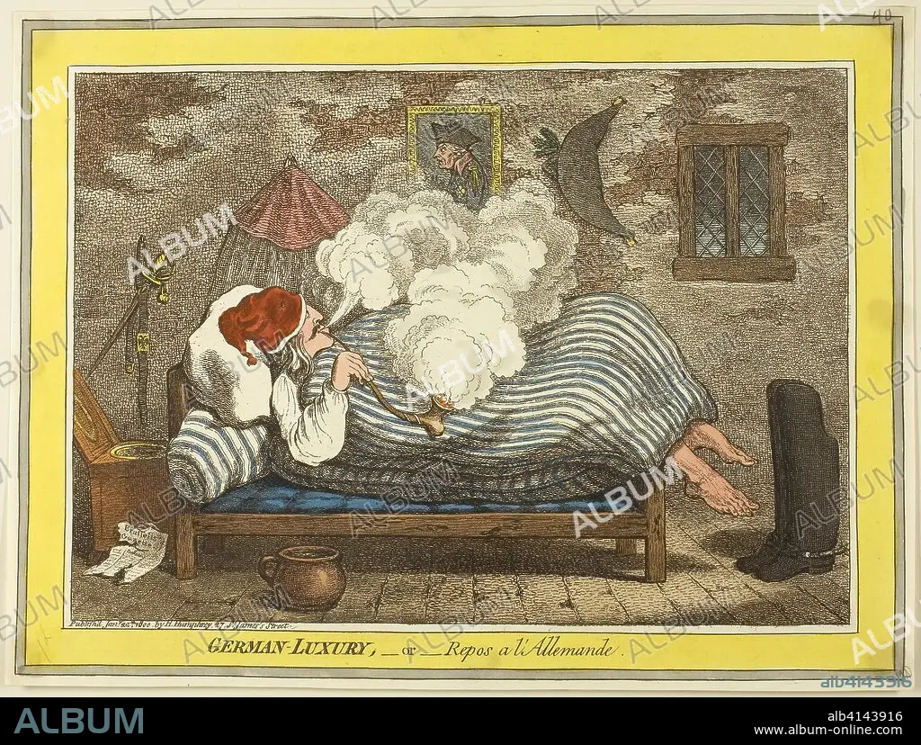 Caption: German Luxury. James Gillray (English, 1756-1815); published by Hannah Humphrey (English, c. 1745-1818). Date: 1800. Dimensions: 230 x 310 mm (image); 240 x 320 mm (sheet). Hand-colored etching on paper. Origin: England.