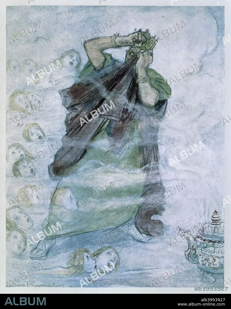 'The Lusitania: Herod's Nightmare, 1915 ''Are They Crying 'Mother' or 'Murder'?''', 1916. Plate 60 from The Great War: A Neutral's Indictment by Louis Raemaekers. The Dutch graphic artist Louis Raemaekers (1869-1956) produced fiercely anti-German cartoons during the First World War. The Germans offered a substantial reward for him, dead or alive, and the Dutch government, under pressure from Germany, placed Raemaekers on trial on a charge of endangering Dutch neutrality. He was acquitted, but fled to England because of the bounty on his head.