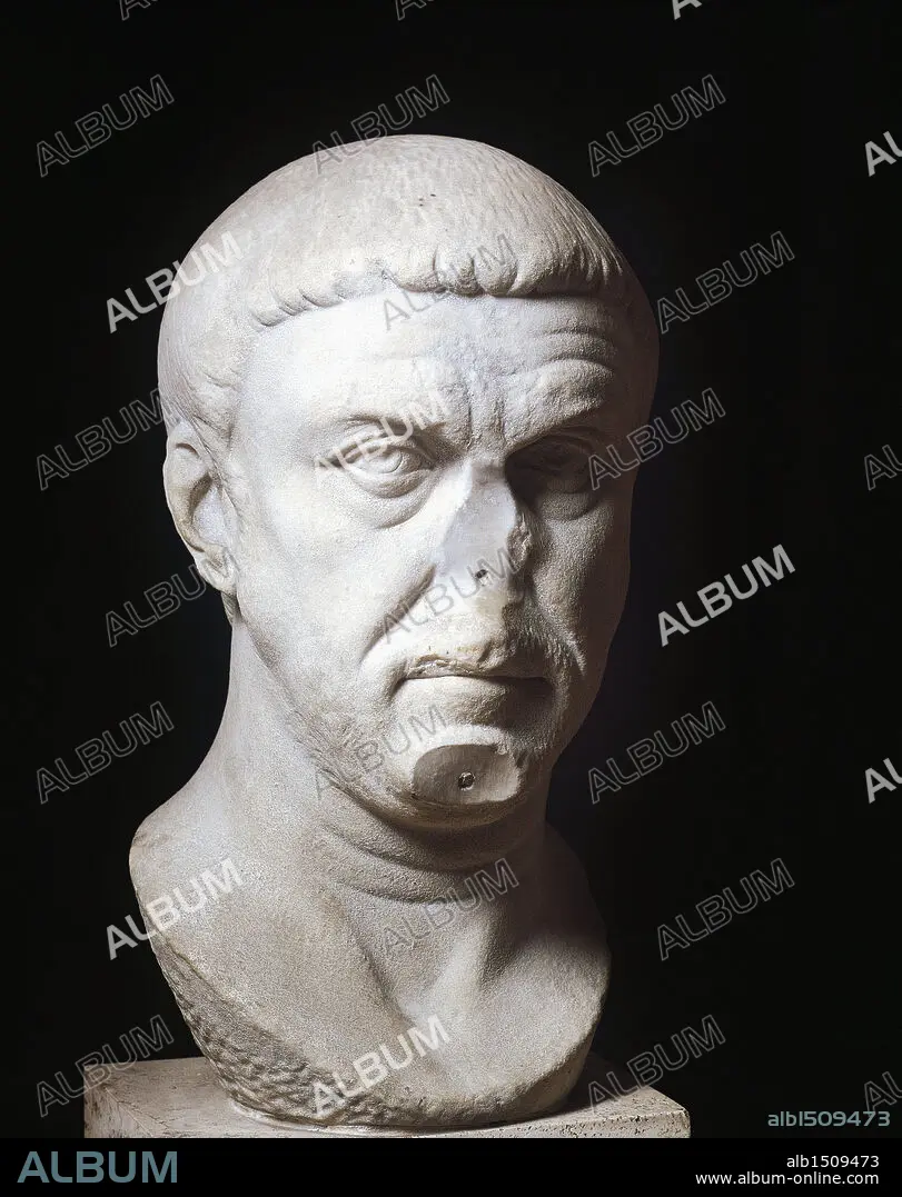 Caption: Roman civilization, 3rd century A.D. Head of Emperor Maximian (Marcus Aurelius Valerius Maximianus Herculius), 250-310 A.D.