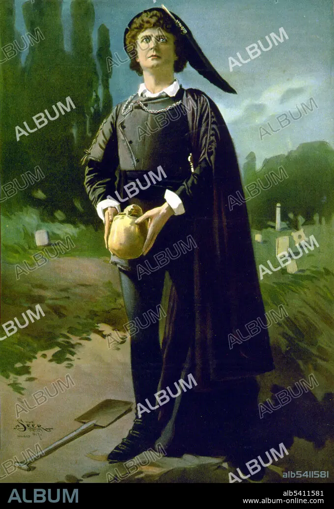 Caption: Entitled: "Robert B. Mantell as Hamlet." The Tragedy of Hamlet, Prince of Denmark, often shortened to Hamlet, is a tragedy written by William Shakespeare between 1599 and 1602. Set in Denmark, the play dramatizes the revenge Prince Hamlet is called to wreak upon his uncle, Claudius, by the ghost of Hamlet's father, King Hamlet. Claudius had murdered his own brother and seized the throne, also marrying his deceased brother's widow. Hamlet is Shakespeare's longest play, and is considered among the most powerful and influential works of world literature. The play likely was one of Shakespeare's most popular works during his lifetime, and still ranks among his most performed. Robert Bruce Mantell (February 7, 1854 - June 27, 1928) was a noted Shakespearean stage actor who made several silent films. Lithograph by A.S. Seer Print, 1890.