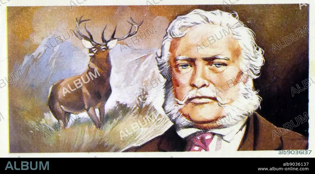 Caption: 1969 Brooke Bond collectors tea card, depicting: Sir Edwin Henry Landseer RA (7 March 1802 1 October 1873) was an English painter,[1] well known for his paintings of animalsparticularly horses, dogs and stags