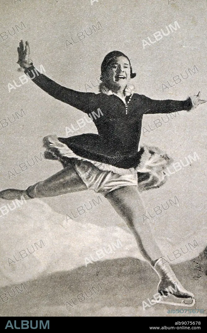 Caption: Photograph of Sonja Henie (1912 - 1969) at the 1932 Winter Olympic games. Sonja was a Norwegian figure skater and won gold in the Ladies singles.