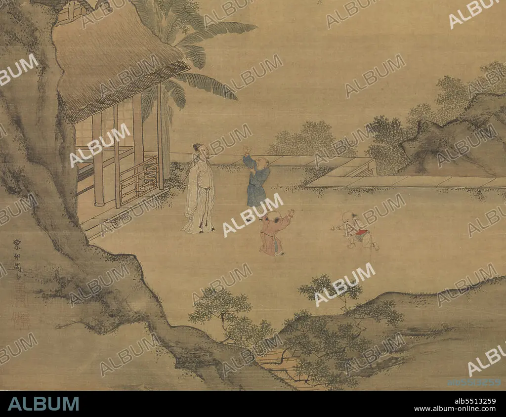ZHOU CHEN (CHOU CH'EN). Idly Watching Children Catch Willow Flowers.
