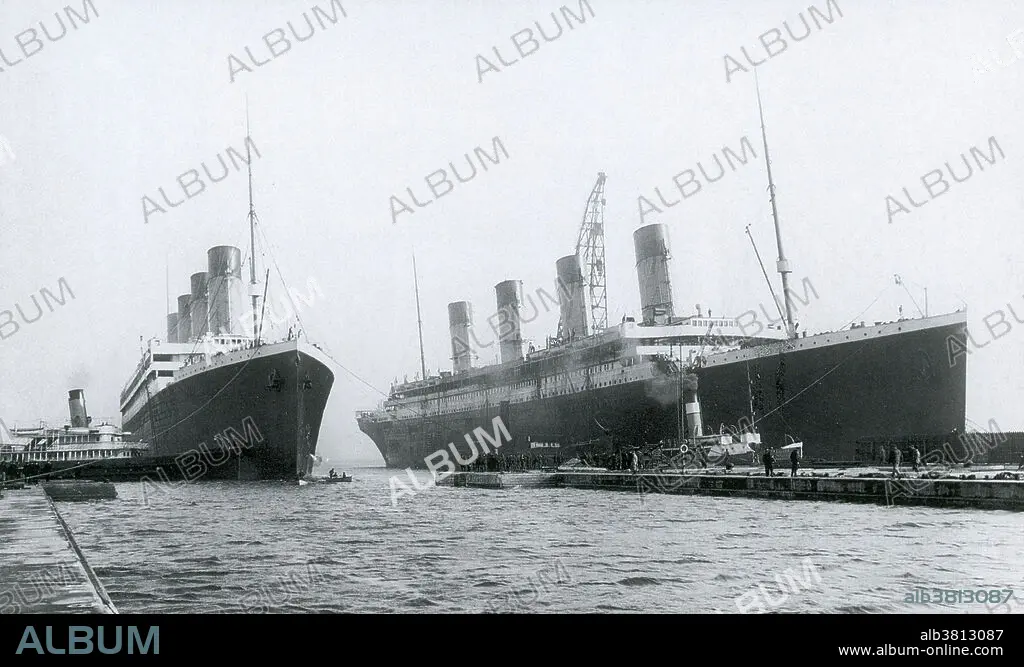 RMS Titanic and its sister ship RMS Olympic leaving the Harland and Wolff shipyard, Belfast, Ireland. Titanic, the largest ocean liner ever built at the time, was reputed to be unsinkable. However, during its maiden voyage it struck an iceberg in the North Atlantic on the night of 14 April 1912 and sank with the loss of 1517 lives. The Olympic had its maiden voyage from the 14th to the 21st June 1911, and remained in service until 1937.