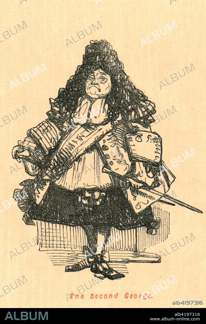 Caption: 'The Second George', 1897. Caricature of King George II of Britain and Ireland (1683-1760). From "The Comic History of England" by Gilbert Abbott A Beckett, with satirical illustrations by John Leech. [Bradbury, Agnew & Co, London, 1897]