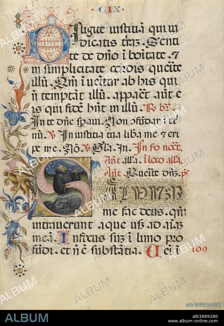 Caption: Initial S: A Monk Praying in the Water. Date/Period: Ca. 1420. Detached leaf. Tempera colors, gold leaf, and ink on parchment. Height: 465 mm (18.30 in); Width: 346 mm (13.62 in).