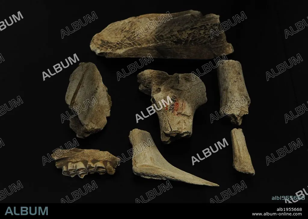 Tools of flint and animal bones. Performed by Homo sapiens (Cro-Magnon). Upper Paleolithic. National Museum of Denmark. Copenhagen. Denmark.