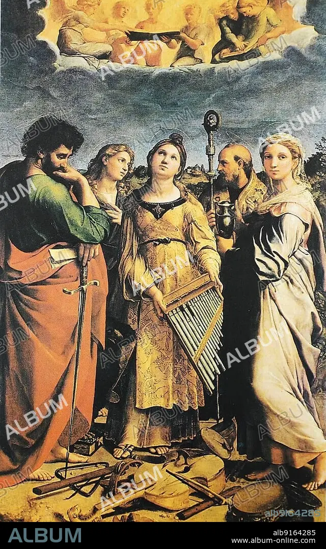 Caption: Saint Cecilia, by Raffaello Sanzio da Urbino, also Raffael da Urbino, Raffaello Santi, Raffaello Sanzio, Raphael, Italian painter, Italy, digitally restored reproduction of a work of art (public domain) from c. 1500, Europe