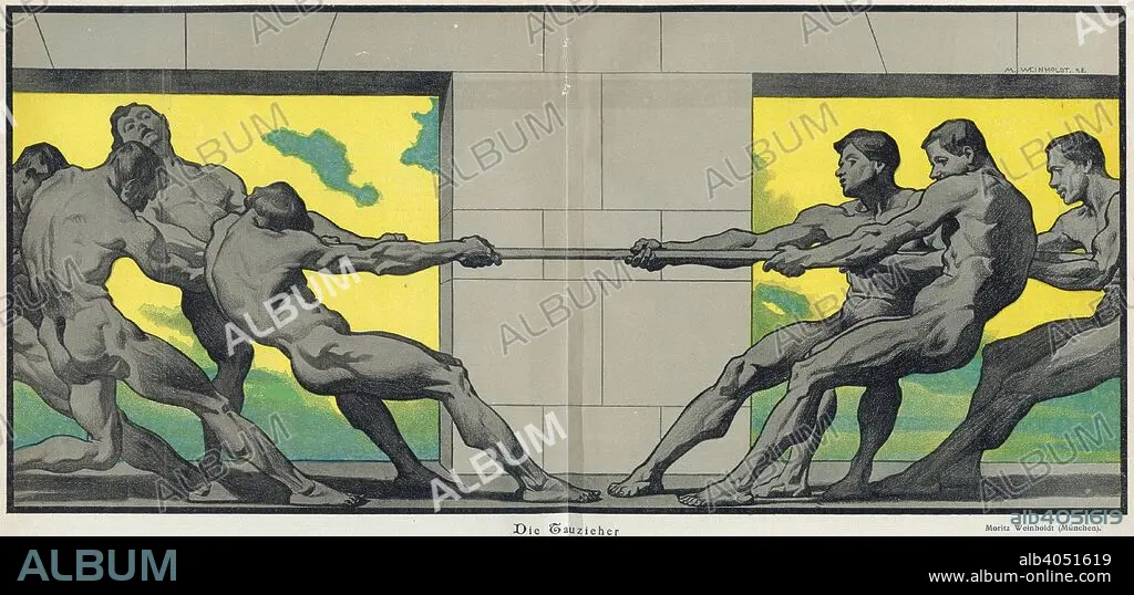 Caption: Tug of war, 1898. Illustration from Jugend, a German weekly art magazine. Jugend featured many German Art Nouveau artists and gave rise to the term 'Jugendstil' (Youth Style).