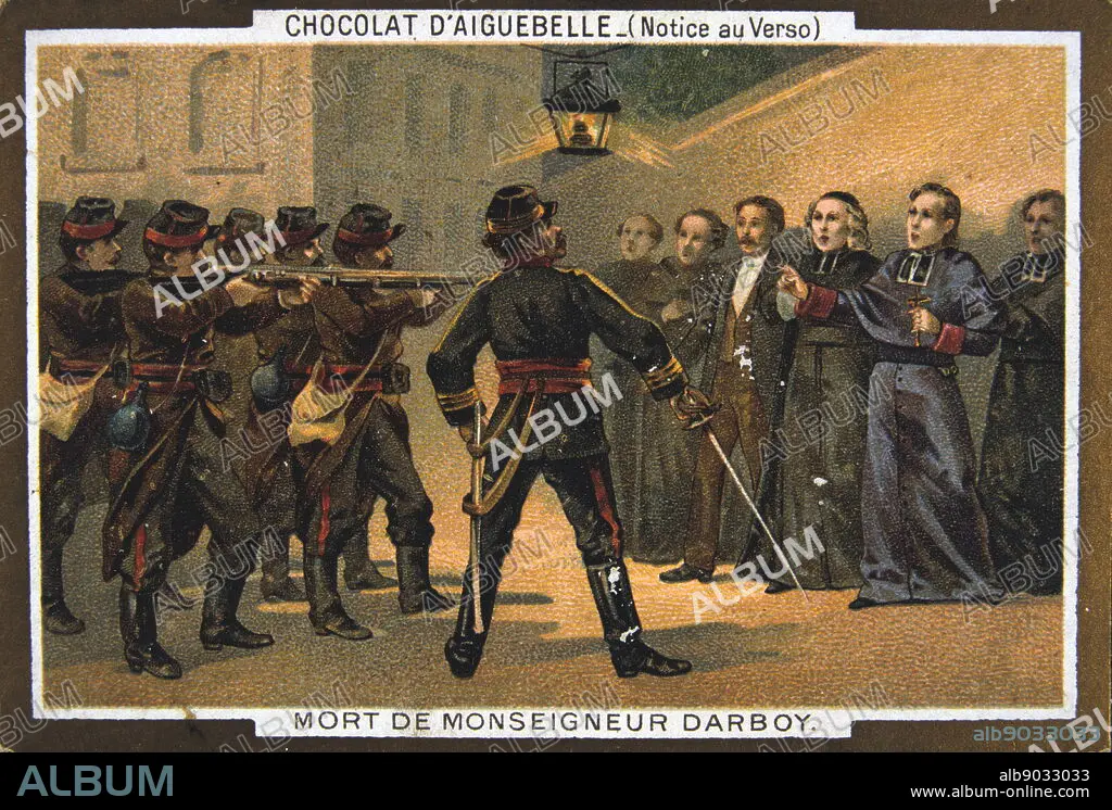 Caption: Death of Monseigneur Darboy, Archbishop of Paris, 24th May 1871. As the government forces sent to suppress the Paris Commune closed in, the Communards executed hostages they had taken. Amongst them was Georges Darboy, Archbishop of Paris, as well as several other clergymen. From a private collection.