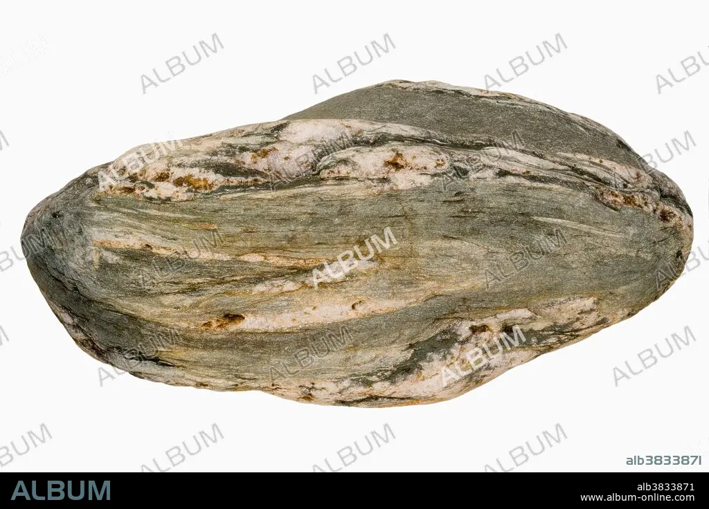 Caption: Chlorite Schist, rounded by water erosion, from Huntington, Vermont, USA. Sample courtesy of Perkins Museum of Geology, University of Vermont.