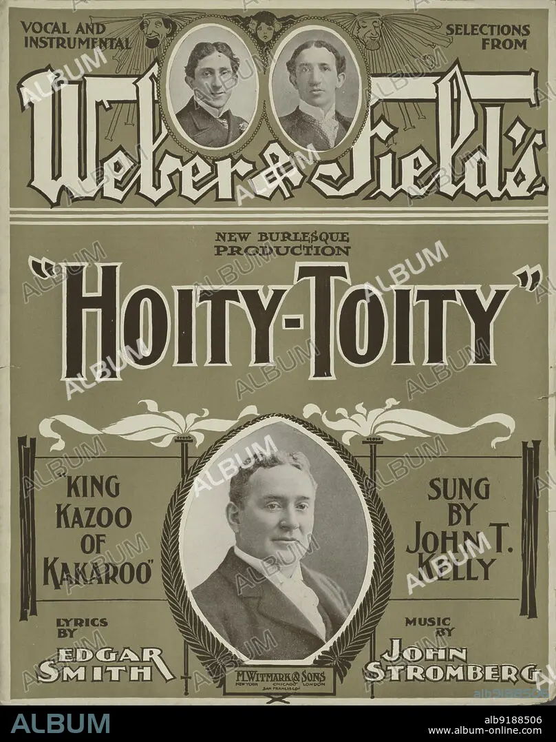 'King Kazoo of Kakaroo', 1901. 'Vocal and instrumental selections from Weber & Field's New Burlesque Production "Hoity-Toity"; King Kazoo of Kakaroo sung by John T. Kelly; lyrics by Edgar Smith, music by John Stromberg'. From a collection of sheet music, some examples of which depict African Americans in a derogatory way. Other examples are songs by white musicians purporting to be black.