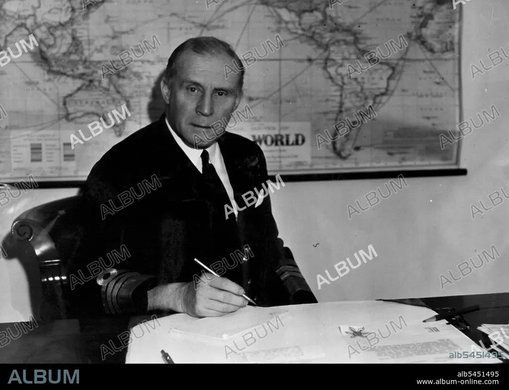 Caption: Admiral Sir Guy Charles Cecil Royle, K.C.B., C.M.G. First Naval Member of the Australian Commonwealth Naval Board and Chief of the Naval Staff. Awarded the C.M.G. in 1919 "or his services in the last war. Created C.B. in 1936. Naval attache at Tokyo from 1924 to 1927. From 1927 to 1929 commanded H.M.S. "Canterbury". From 1930 to 1932 commanded H.M.S. "Excellent". After commanding the aircraft carrier "Glorious" from 1933-34 he became Naval Secretary to the First Lord of the Admiralty, in which appointment he remained until 1937 when he was made Vice-Admiral-in-Charge of Aircraft Carriers and flew his flag in H.M.S. "Ark Royal" - the much-sunk carrier. December 04, 1944. (Photo by Australian Official Photo).