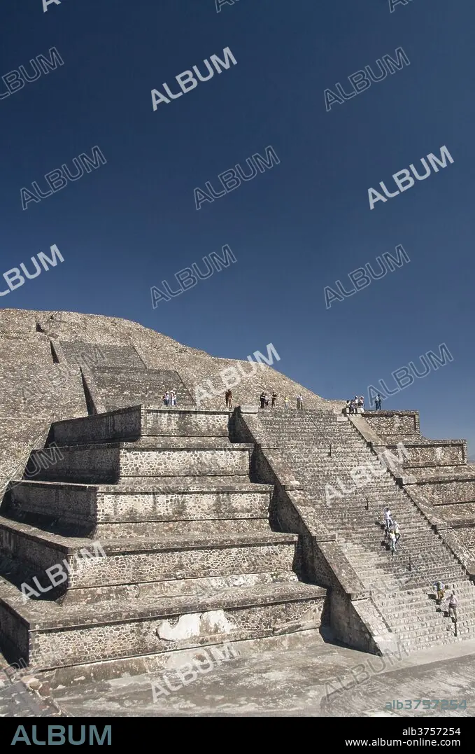 Tourists climbing steps, Pyramid of the Moon, Archaeological Zone of Teotihuacan, UNESCO World Heritage Site, Mexico, North America.