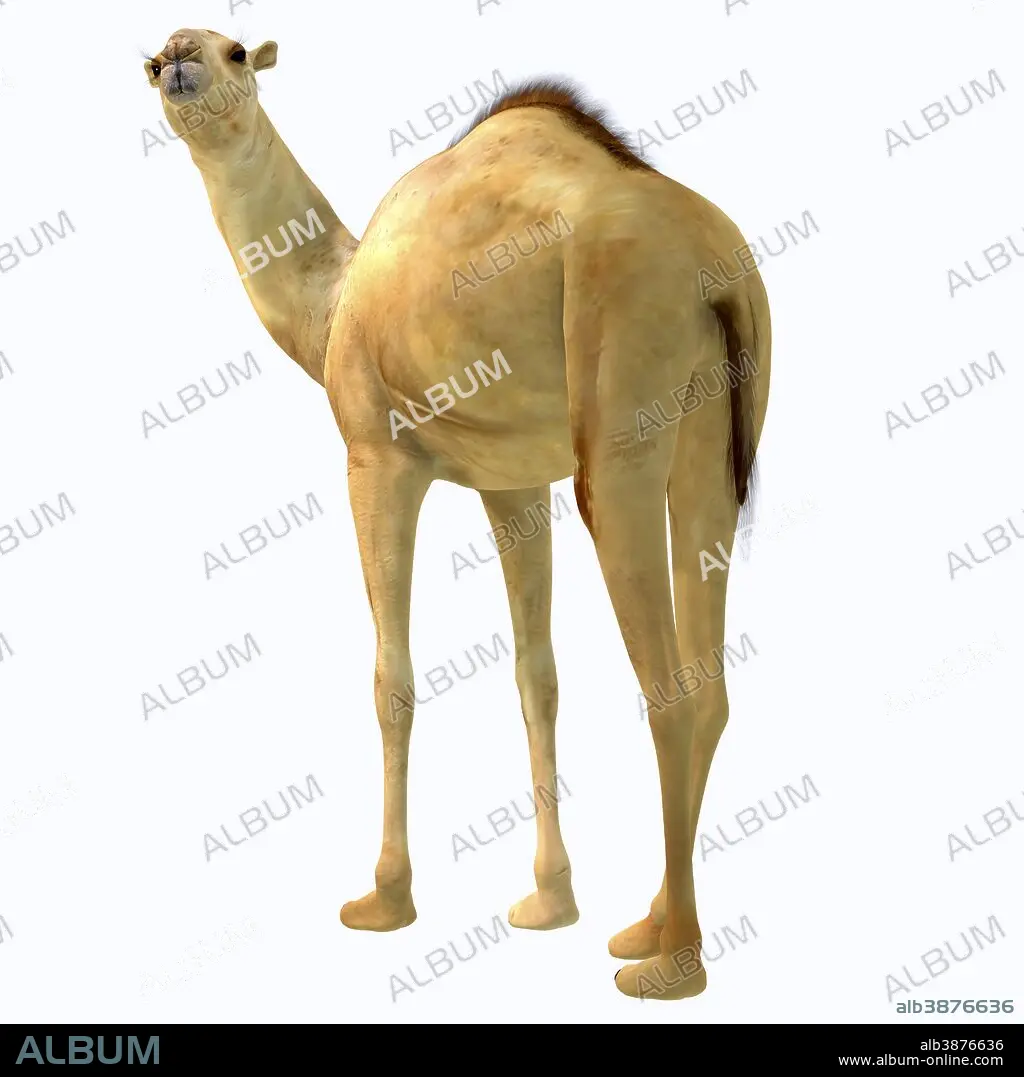 Caption: Camelops hesternus on white background. Camelops was a camel-type herbivorous animal that lived in North America during the Pleistocene Period.