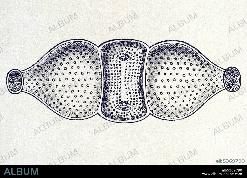 Caption: Historic illustration, tablet 4, title Diatomea, name Triceratium, Biddulphia pulchella, Ernst Haeckel, Kunstformen der Natur, "Art Forms in Nature"