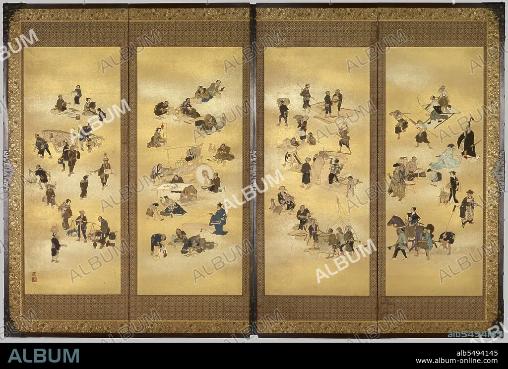 Title: Screen depicting the four classes of Edo Japan, c. 1893; Meiji Period (1868-1912). Creator: Seppo.