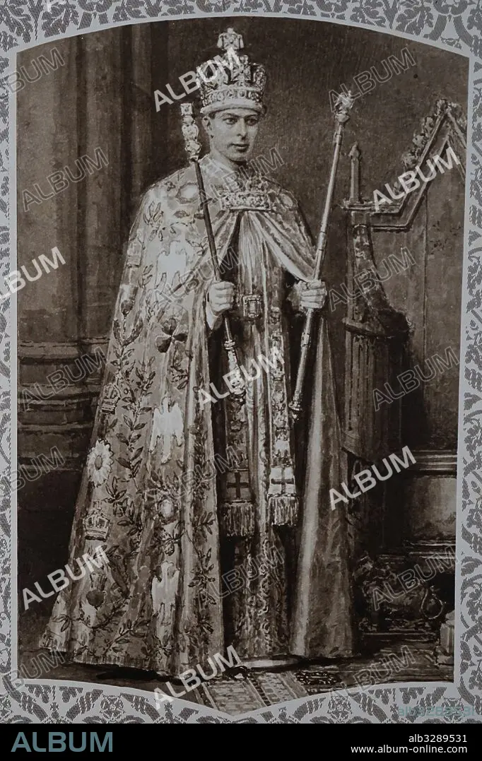 Caption: Portrait of King George VI (1895-1952), King of the United Kingdom and the Dominions of the British Commonwealth, wearing the St. Edward's Crown. Dated 20th Century.