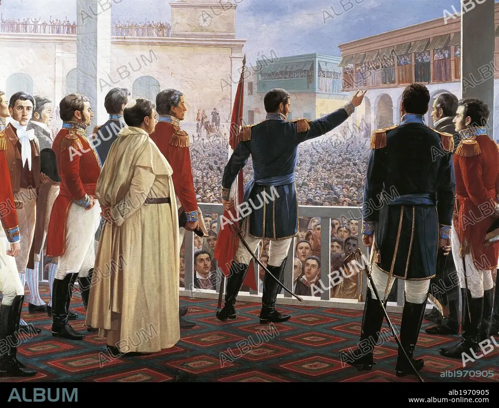 Caption: General Jose de San Martin (1778-1850) proclaiming the independence of Peru, July 28, 1821. Peru, 19th century.