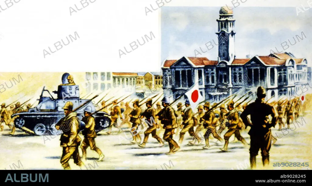 Caption: German world war two illustration of the Japanese occupation of Singapore