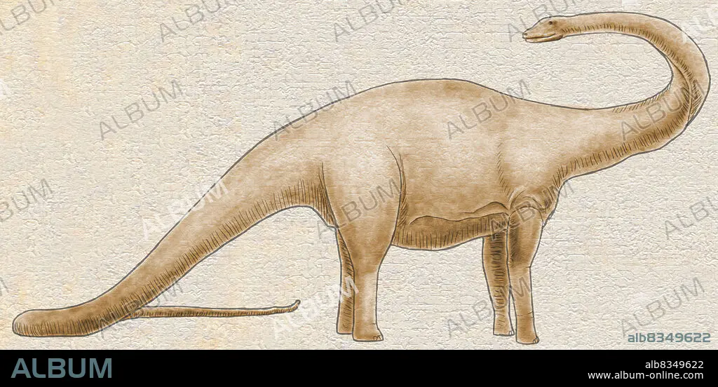 Caption: Measuring 90 ft. (27 m) long, Diplodocus was one of the longest land animals. It is thought that this herbivorous dinosaur, which lived 155 to 145 million years ago, held its long neck in a horizontal position. Its remains have been found in western North America.