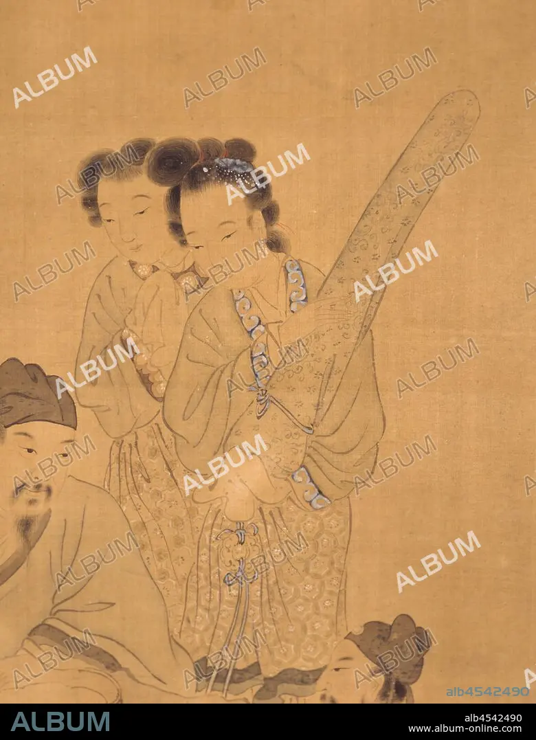 Caption: Figures after Chen Hongshou, Gai Qi (Chinese, 1774-1829), Qing dynasty, period, Jiaqing, 1800, ink and color on silk, 35-3/8 x 18-1/8 in. (image), Signed: Gai Qi Seal: Gai Boyun yin Seal: Yuhu waishi Seal: Gai Qi Seal: Yuhu waishi, Asian Art