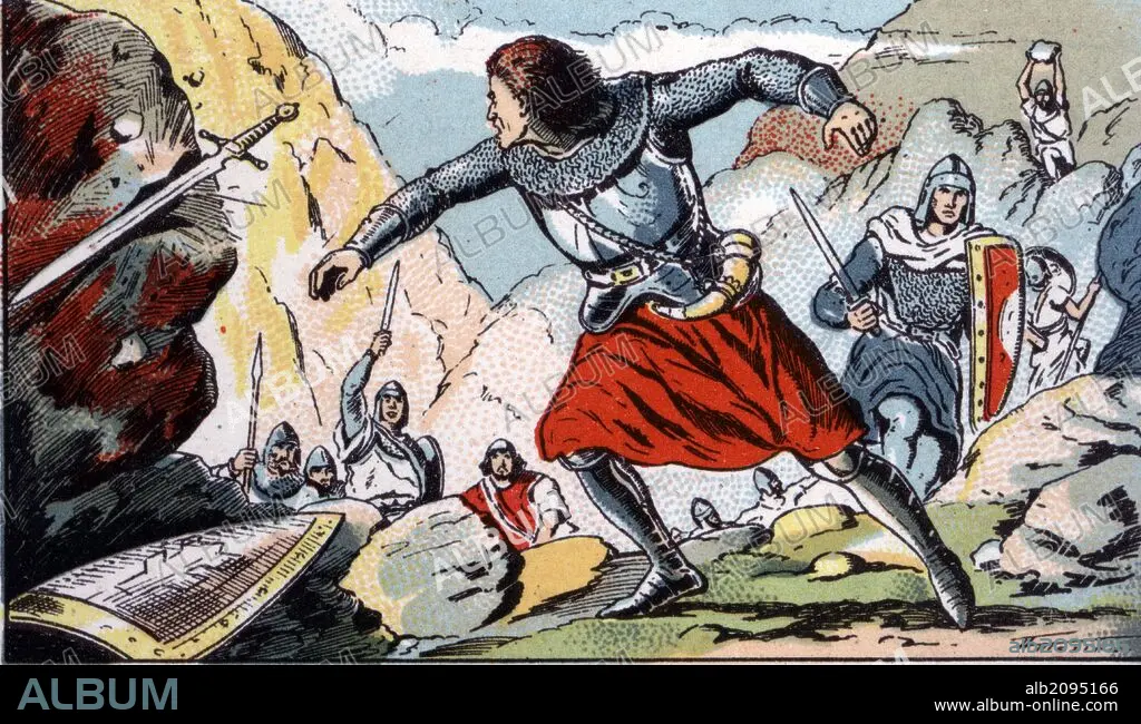 Automatic translation: History. 8th century. Navarre; the Carolingian troops are defeated at the battle of Roncesvalles. 1940s. Drawing by Mestre