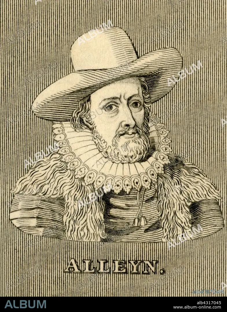 Caption: 'Alleyn', (1566-1626), 1830. Edward Alleyn (1566-1626), English actor and a major figure of Elizabethan theatre. Founder of Dulwich College and Alleyn's School. From "Biographical Illustrations", by Alfred Howard. [Thomas Tegg, R. Griffin and Co., J. Cumming, London, Glasgow and Dublin, 1830]