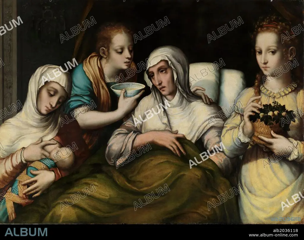 Caption: Luis de Morales / 'The Birth of the Virgin', 1560-1570, Spanish School, Oil on panel, 69,2 cm x 93,2 cm, P07859