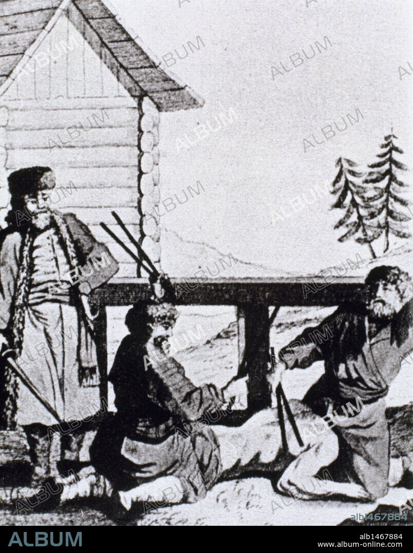History of Czarist Russia. Beating an a servant. Engraving, 18th century.