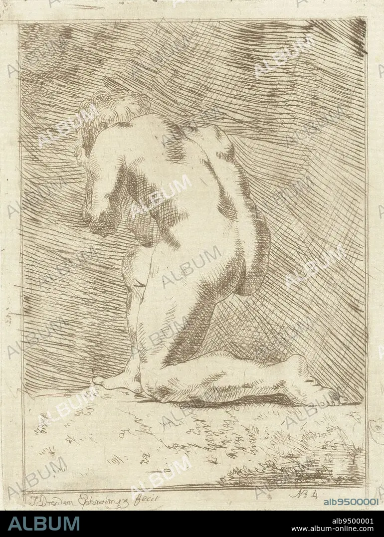 Naked man kneeling on his back., print maker: J. Ephraimszoon Dresden, (mentioned on object), 1800 - 1808, paper, etching, h 105 mm × w 80 mm
