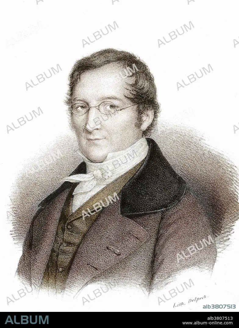 Caption: Joseph Gay-Lussac. Colored historical portrait of the French chemist Joseph Louis Gay-Lussac (1778-1850). In 1804 he made balloon ascents to measure changes in magnetism and air composition with altitude. In 1808 he published the law of combining volumes. This states that the volumes of gases that react with one another, or are produced in a chemical reaction, are in the ratios of small integers (whole numbers). His work gave support to Dalton's atomic theory, and formed the basis for Avogadro's law. Collaborating with Thenard, he was the first to isolate the element boron, and studied the newly-isolated elements sodium, potassium, and iodine.