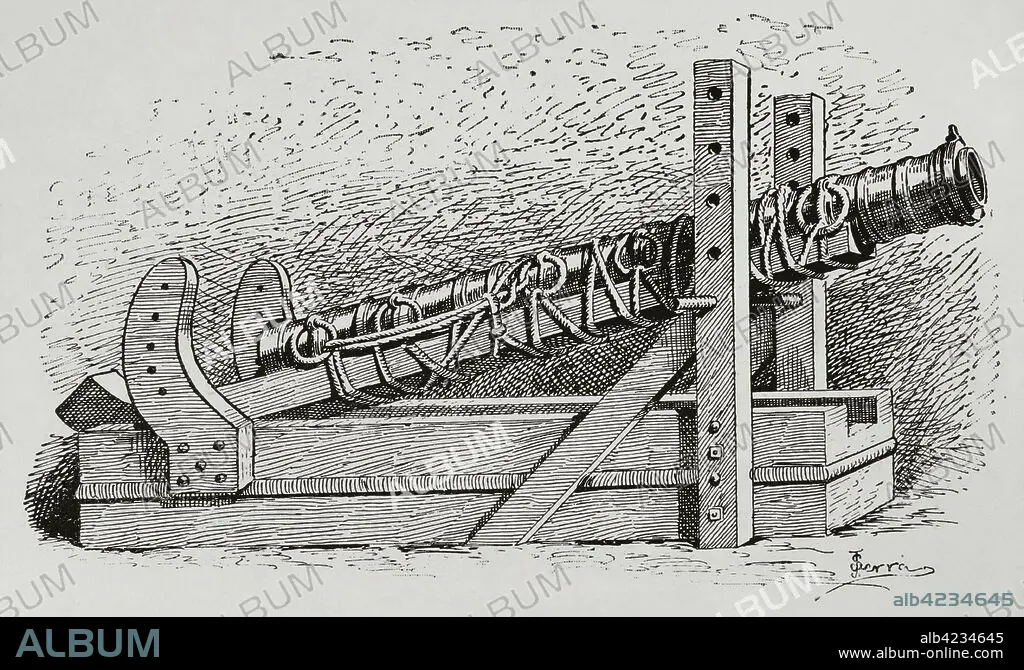Bombard. Cannon used throughout the Middle Ages an the Early Modern Period. Engraving by Serra. Museo Militar, 1883.