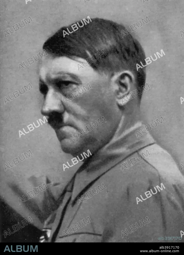Caption: Adolf Hitler, Austrian born dictator of Nazi Germany, 1938. Hitler (1889-1945) became leader of the National Socialist German Workers (Nazi) party in 1921. After an unsuccessful coup attempt in Munich in 1923, for which he was briefly imprisoned, Hitler set about pursuing power by democratic means. His nationalistic and anti-semitic message quickly gained support in a Germany humiliated by defeat in World War I and the harsh terms of the Treaty of Versailles and, from the late 1920s, suffering from economic collapse. Hitler came to power in 1933, and persuaded the Reichstag (parliament) to grant him dictatorial powers. He proceeded to crush opposition both within his own party and throughout German society, and set about re-arming Germany. Hitler's aggressive policy of territorial expansion to secure 'lebensraum' (living space) for the German people eventually plunged the world into the Second World War. A print from Wie die Oftmark ihre Befreiung erlebte (The Way towards the Liberation), Berlin, 1940.