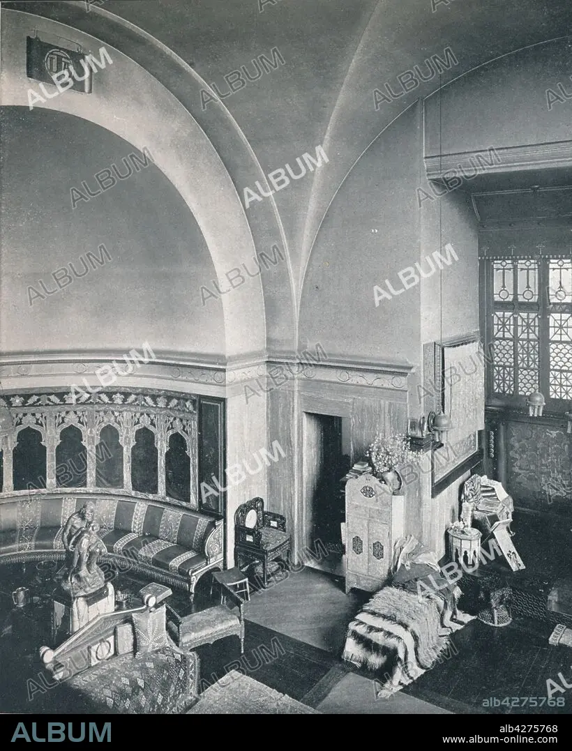 Caption: 'The Studio from the Balcony', late 19th century. The exotic studio of Dutch-born British painter Sir Lawrence Alma-Tadema (1836-1912) which was used as settings for his paintings. The house in Grove End Road, St John's Wood in London, had previously belonged to another painter, James Tissot. From "Modern Art Monographs".