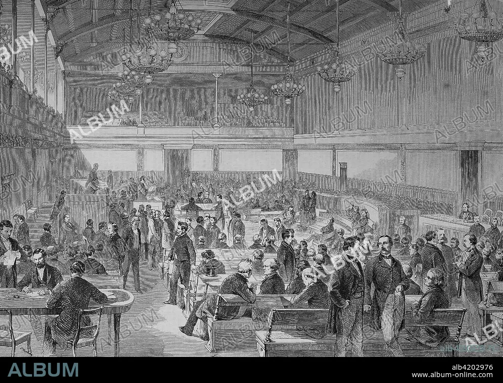 Elections to the Zollparlament of the German Zollverein, held in February and March 1868, The Zollparlament consisted of the members of the Reichstag of the North German Confederation and members from the South German states, illustration from the 19th century.