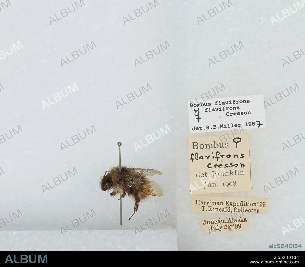 Caption: Juneau, Alaska, United States, Bombus (Pyrobombus) flavifrons Cresson, 1863, Animalia, Arthropoda, Insecta, Hymenoptera, Apidae, Apinae