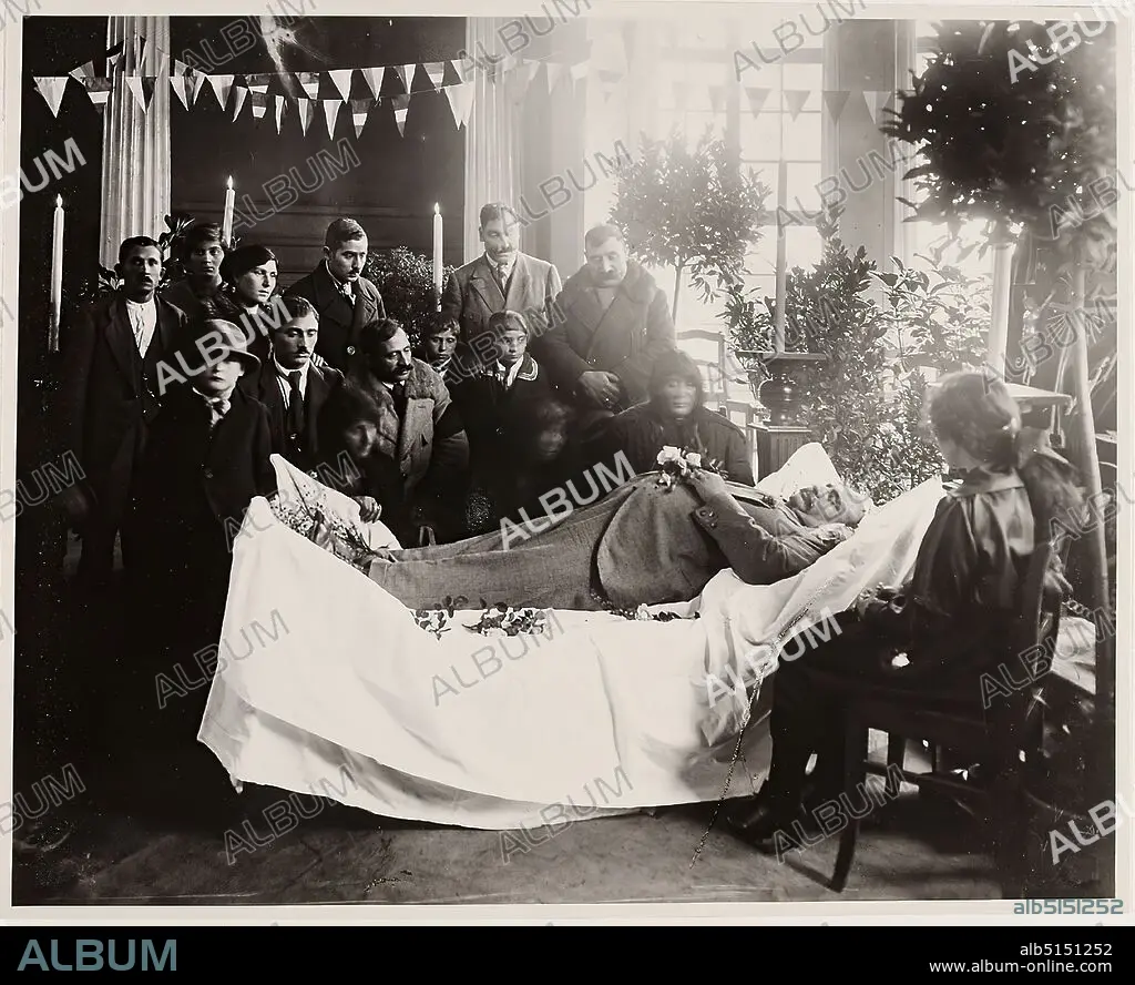 Caption: Louis Held, funeral service for a gypsy king in Weimar, Staatliche Landesbildstelle Hamburg, collection on the history of photography, silver gelatine paper, cardboard, black and white positive process, image size: height: 16.80 cm; width: 20.90 cm, inscribed: verso and on the cardboard: photographer, place, title, dimensions and inv.- No. handwritten in black, stamp: verso and left on the cardboard: stamp Staatliche Landesbildstelle Hamburg, reporting photography, mourning, mourning customs