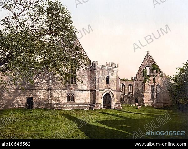 Wingfield Manor is a derelict manor house, abandoned since the 1770s, near the village of South Wingfield, Derbyshire, England, Historic, circa 1900, digitally restored reproduction based on a 19th century original, Wingfield Manor is a derelict manor house, abandoned since the 1770s, near the village of South Wingfield, Historic, circa 1900, digitally restored reproduction based on a 19th century original