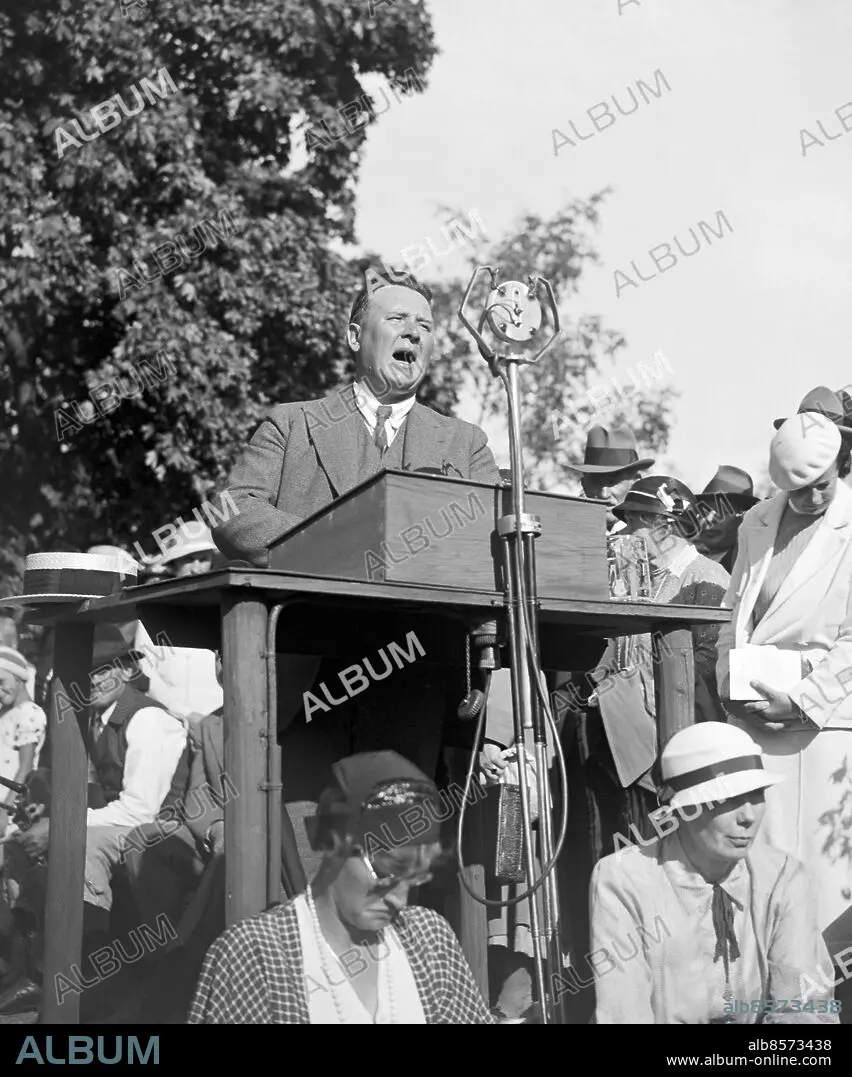 ARKIV 1933 . Arthur Engberg, socialdemokratisk politiker, ecklesiastikminister 1932-39. Införde den sjuåriga folkskolan. Håller här tal på Hälsinglands dag.. Foto: TT Historical / kod 1900