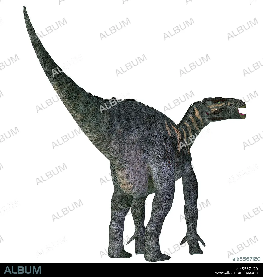 Iguanodon dinosaur. Iguanodon was a herbivorous ornithopod dinosaur that lived in Europe during the Cretaceous Period.