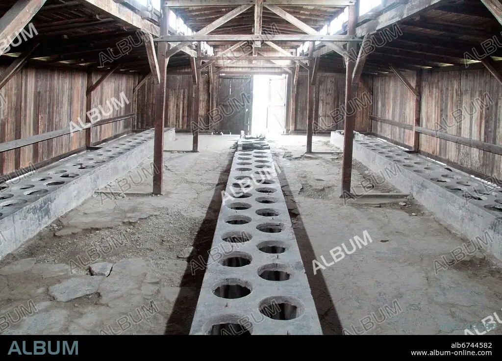 Prisoners' toilettes at barracks in Birkenau (Auschwitz) Nazi concentration camp in Poland.